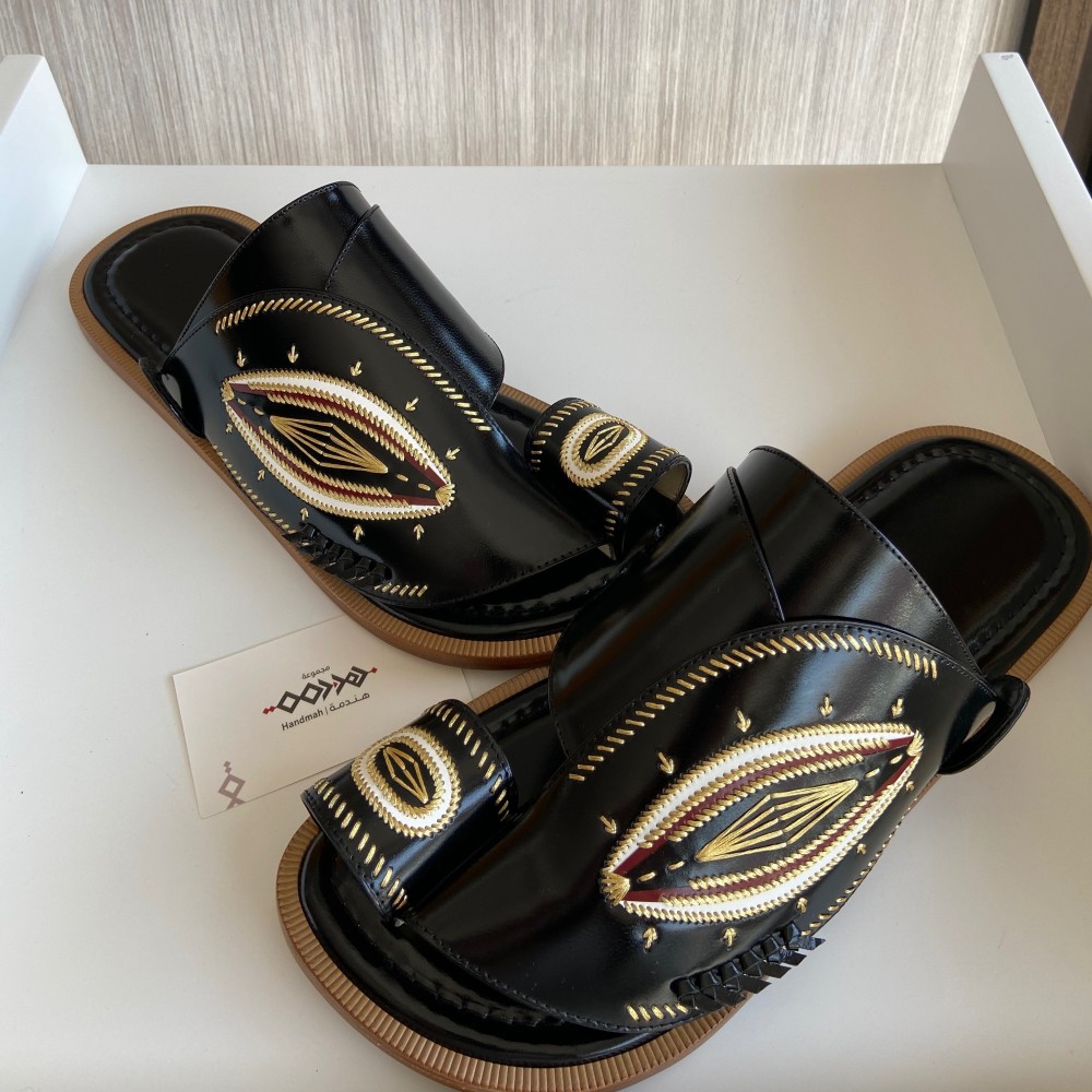 • يتميز الحذاء الشرقي بتطريز يدوي أسود تربل بتصميم فريد ومميز، مما يعطي الحذاء مظهرًا أنيقًا وجذابًا.
