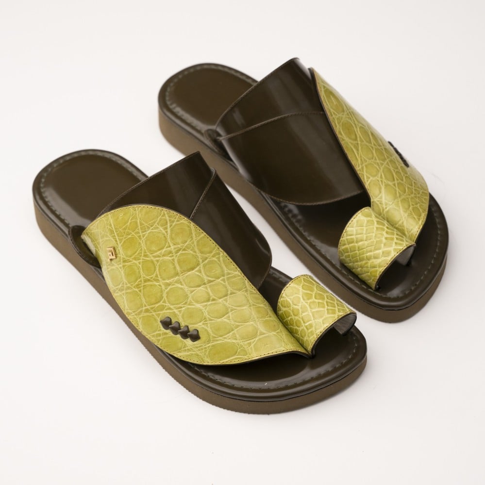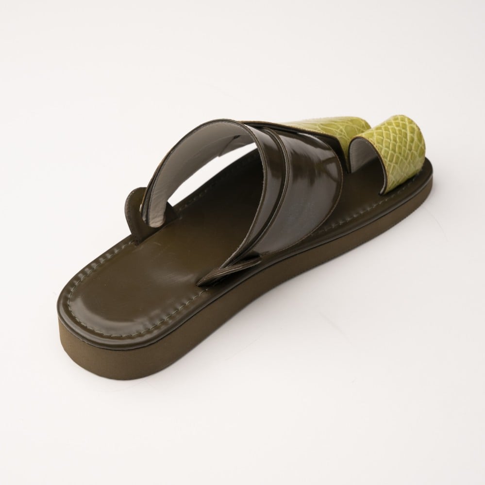 • لون الجلد الزيتي الفاتح يضيف لمسة أنيقة ومميزة إلى الحذاء الشرقي، مما يجعله قطعة فريدة وجذابة.