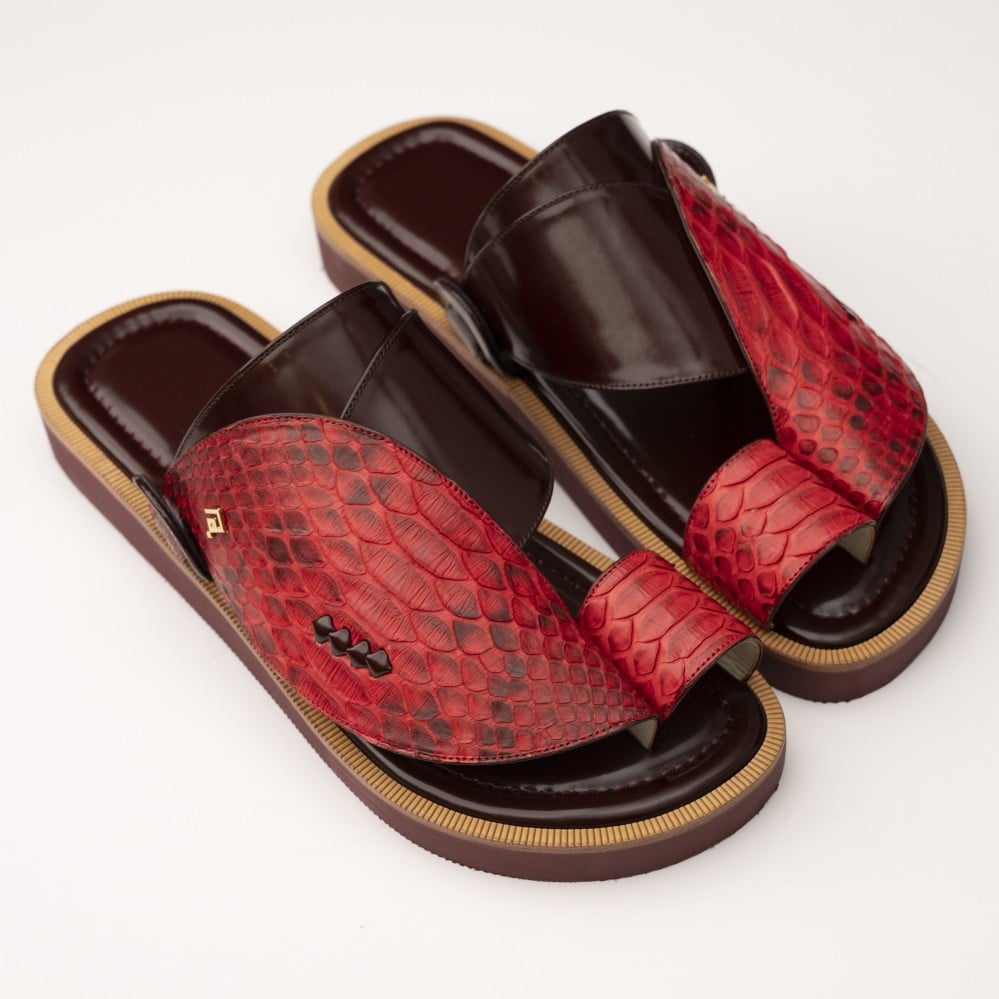 • يتميز هذا الحذاء بمظهر فاخر ومميز بفضل استخدام جلد الثعبان الأحمر والعودي، مما يضفي لمسة من الأناقة والتميز على إطلالتك.