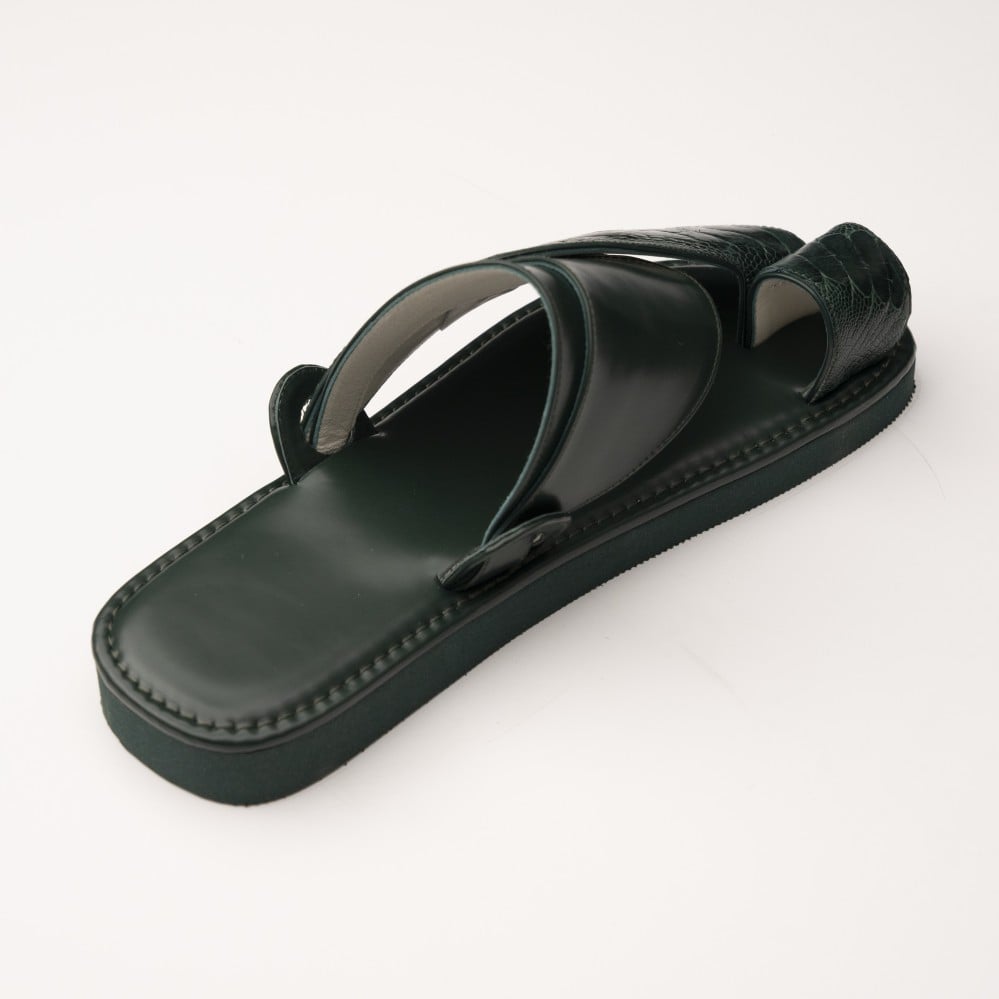 - يتميز الحذاء الشرقي بجلد ساق النعام الأخضر الغامق بمظهر فاخر وأنيق، مما يضيف لمسة من الأصالة والجمال إلى مظهرك.