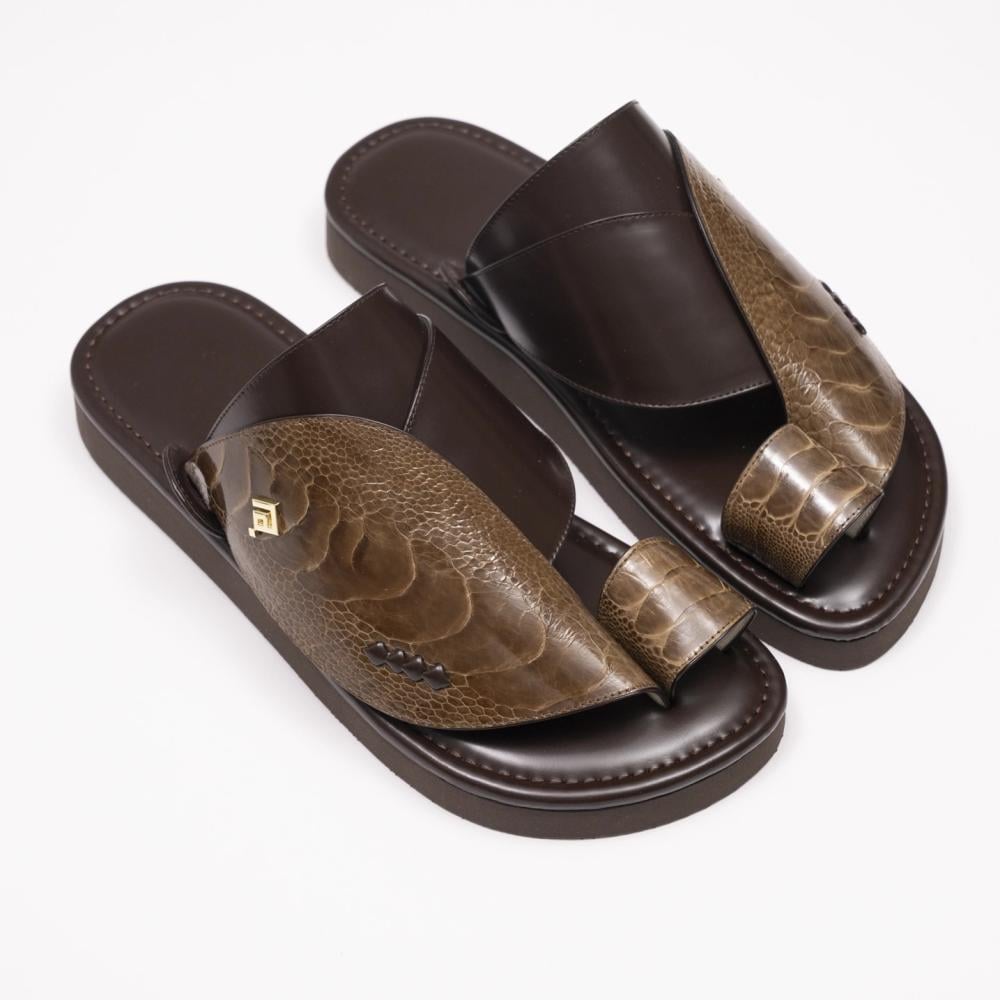 شبشب جلد طبيعي ساق نعام بني يجمع بين الحرفية اليدوية وجودة الخامات الطبيعية ليمنح تجربة مختلفة لعشاق الأحذية التقليدية ذات الطابع العصري حيث يتميز بلون بني كلاسيكي يعد من أكثر ألوان الجلد الطبيعي شيوعًا، ما يجعله خيارًا عمليًا للتنسيق مع مختلف الملابس.