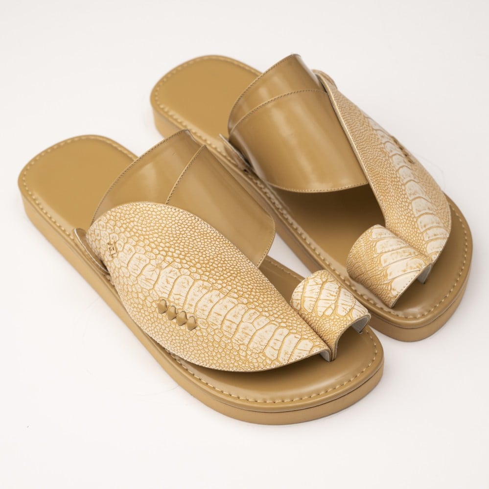 يعد زبيري شرقي جلد ساق نعام بيج مطفي مع بيج من متجر هندمه واحدة من المنتجات تلك التي تجمع بين الجودة العالية والدقة في الصناعة اليدوية كما يمنح تجربة ارتداء مميزة بفضل استخدام جلد ساق النعام الطبيعي المعروف بمتانته وقوة تحمله.