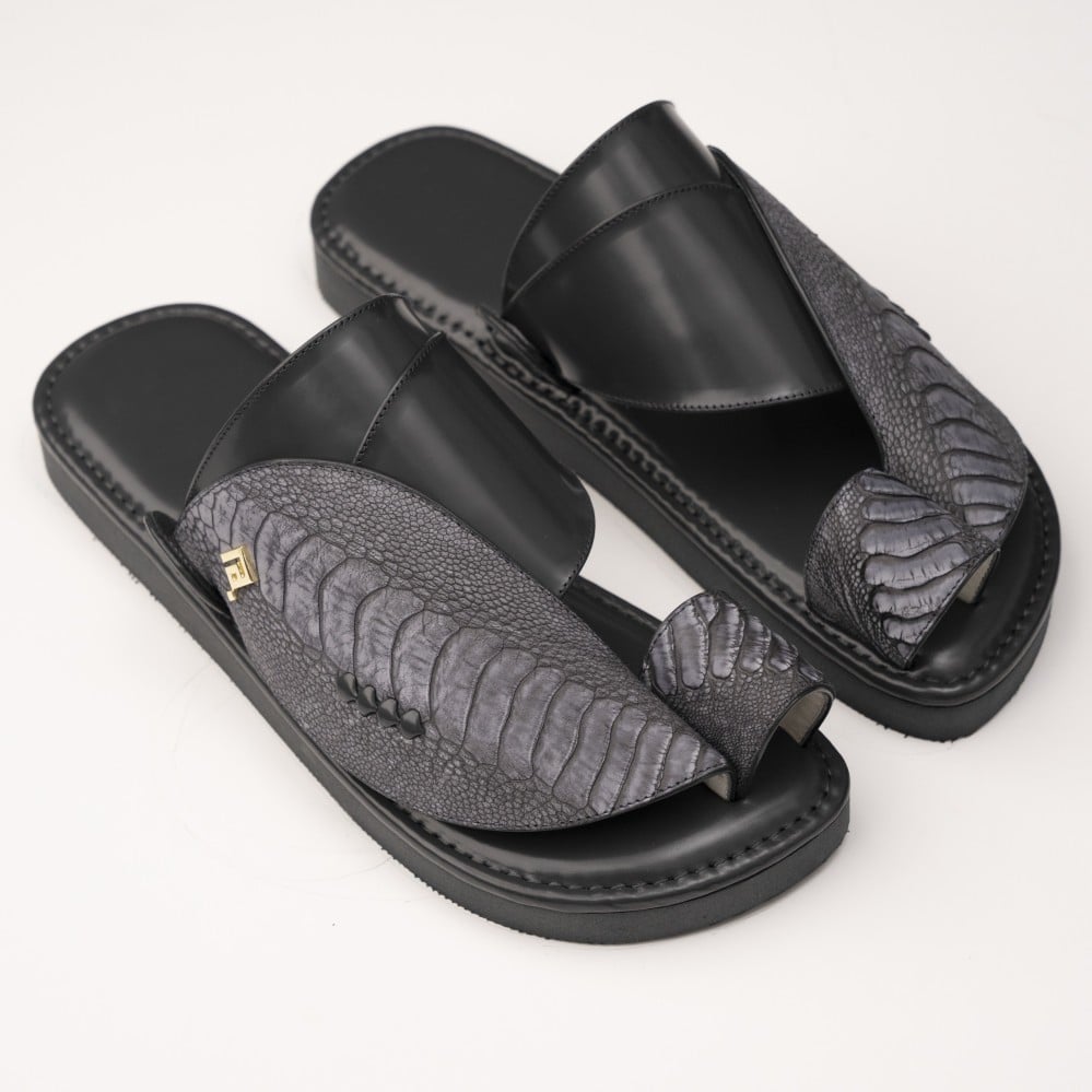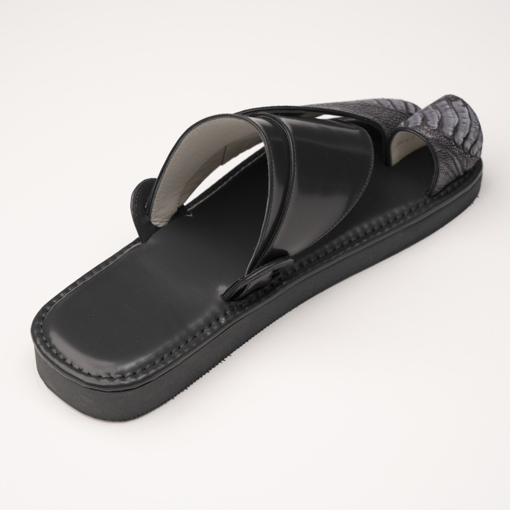 • يتم صنع الحذاء من جلد ساق النعام، وهو مادة متينة وقوية تتحمل الاستخدام اليومي وتدوم لفترة طويلة.
