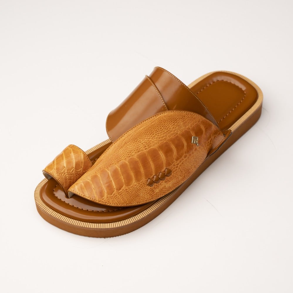 مواصفات حذاء رجالي جلد ساق نعام عسلي
