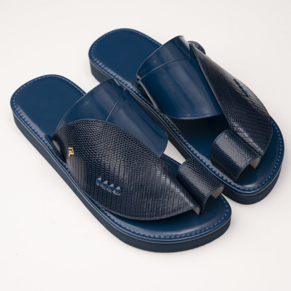 - يتميز نعال رجالي جلد لزرد كحلي بتصميم فريد ومبتكر باللون الأحمر إنه تعبير عن الأناقة والجاذبية.