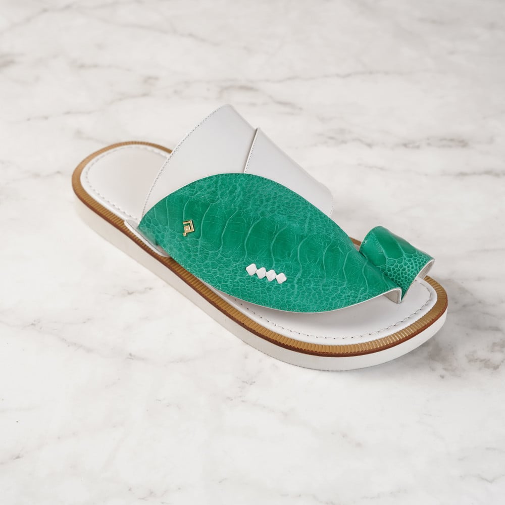 يتميز شبشب جلد ساق نعام تيفاني فاتح بصناعته اليدوية التي تعكس دقة التفاصيل وجودة المواد الطبيعية المستخدمة فيه حيث تم تصميمه ليجمع بين الأصالة واللمسة العصرية، كونه يأتي بلون مميز يضيف حضورًا أنيقًا ويمنح مظهرًا مختلفًا يمكن تنسيقه بسهولة مع ملابس متنوعة.