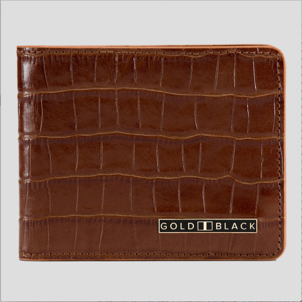 خامة المنتج: "محفظة مطوية (كروكو) - بني" جلد طبيعي صناعة يدوية من ماركة (قولد بلاك) الألمانية الشهيرة.